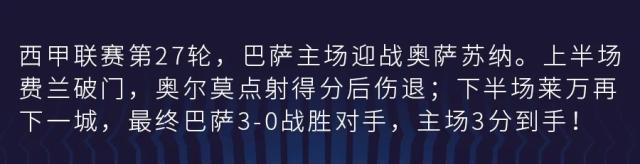 赛程安排-【西甲】费兰+奥尔莫+莱万破门!巴萨3比0奥萨苏纳