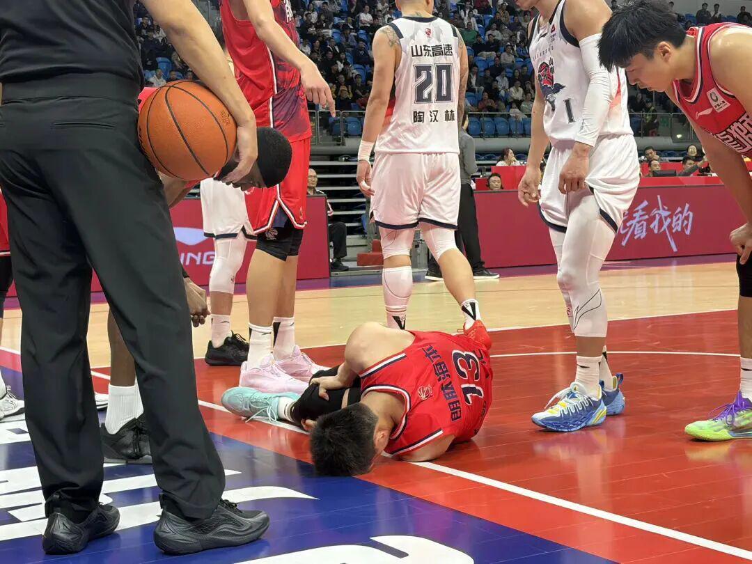 比赛进行到第四节,郭艾伦在一次进攻上篮对抗中倒地,抱着左膝的他非常痛苦,之后被担架抬出场外。从现场来看,伤势似乎不轻,前叉千万不要有问题,真的希望无大碍。